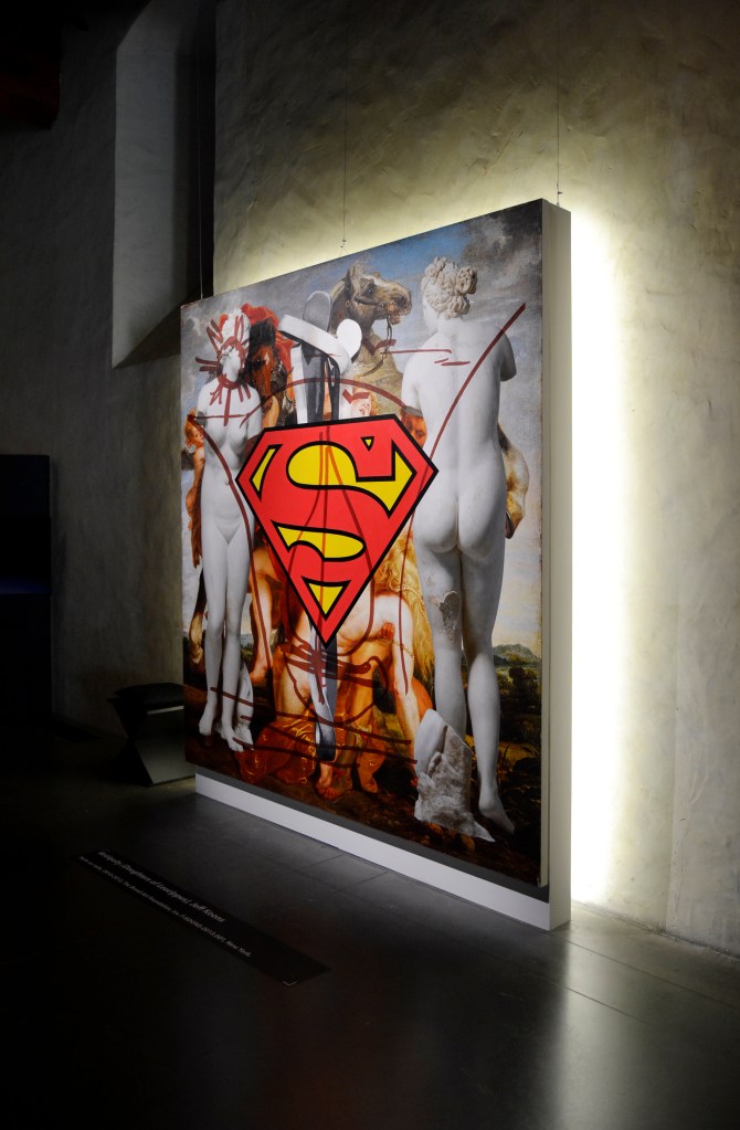 Illus. 13. L’oeuvre Daughters of Leucippus, de la série Antiquity de l’Artiste Jeff Koons (Huile sur toile, 260x245cm, 2010-2012), est disposée sur une cloison indépendante avec rétro éclairage, pour lui conférer ce statut « d’oeuvre phare ». Scénographie et photo de Guillaume Lamarque, février 2019.