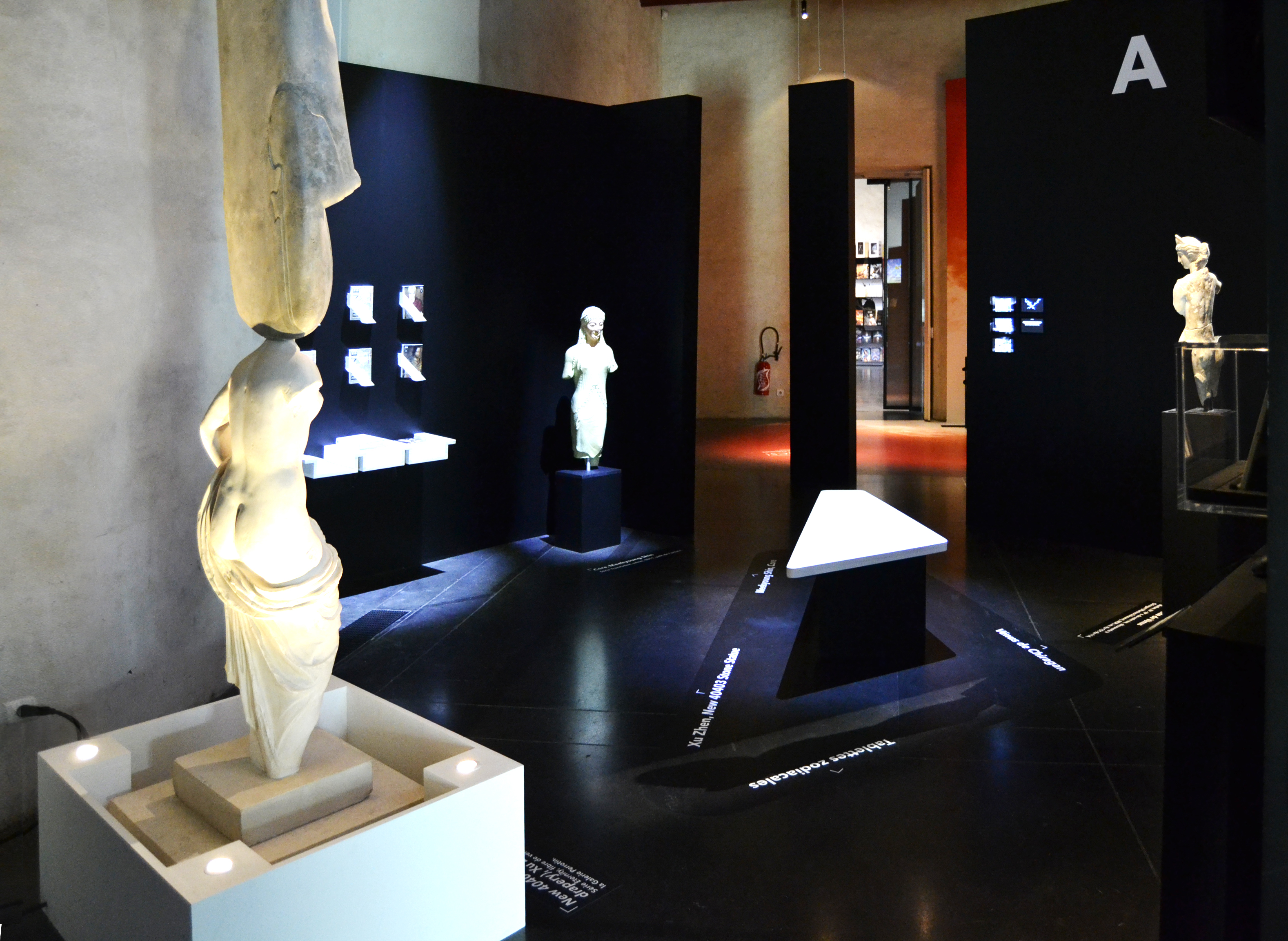 Pour cette exposition ambitieuse, le musée fait appel à Guillaume Lamarque, Designer et étudiant en Master DTCT à l’université Toulouse II, afin de réaliser le design global de l’exposition, soit l’Identitée Visuelle (l’affiche, le teaser bande-annonce, le catalogue et le carton d’invitation) et la Mise en espace (la scénographie). En ce point, il a été écrit auparavant – pour un article intégré à la publication du catalogue d’exposition – que cette exposition a la volonté de donner “au visiteur, au public, des clés afin de comprendre comment l’Antiquité se retrouve dans la création contemporaine de la B.D., du manga, cinéma, jeux vidéo, art contemporain, etc. Le visiteur est en effet peu ou pas conscient de la majorité de ces incarnations. Et pourtant c’est tout autour de lui et parfois sous ses yeux que l’Antiquité apparaît”.1