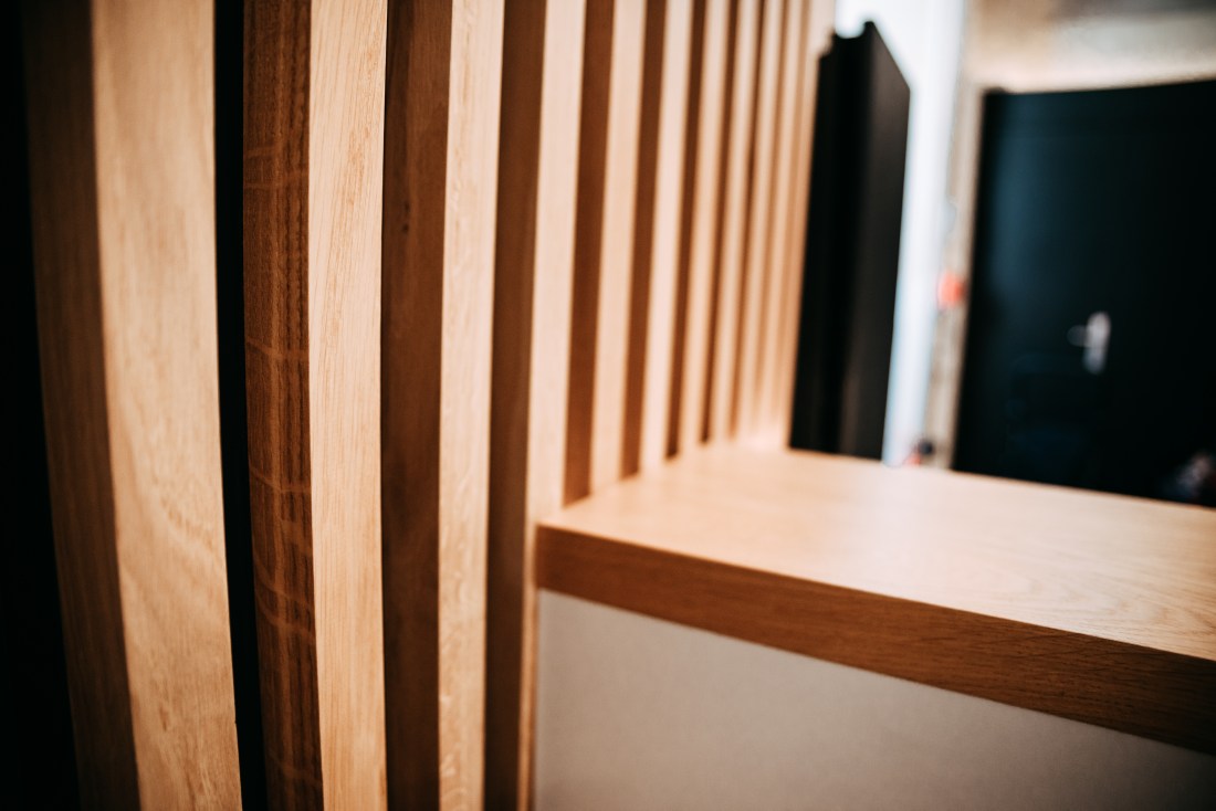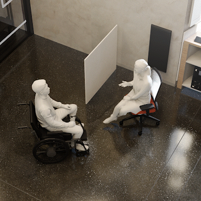 Ensuite, le mobilier s’adapte à leurs besoins. Du côté visiteur, une large et profonde tablette permet à la personne en fauteuil roulant d’être à l’aise dans les échanges et ce temps passé « en caisse ».