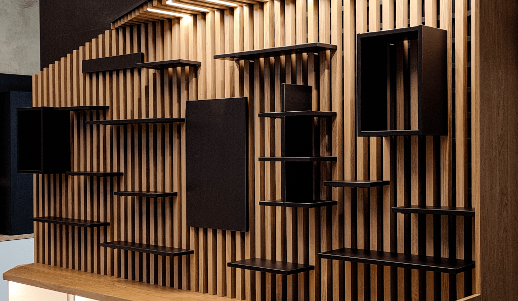 Le mobilier conçu répond à un réel besoin d’évolution de présentation. Les étagères sont amovibles, de sorte à ce qu’elles puissent être placées à n’importe quel endroit de la partie supérieure de la surface de vente, dans la limite d’une trame permettant cette modularité.