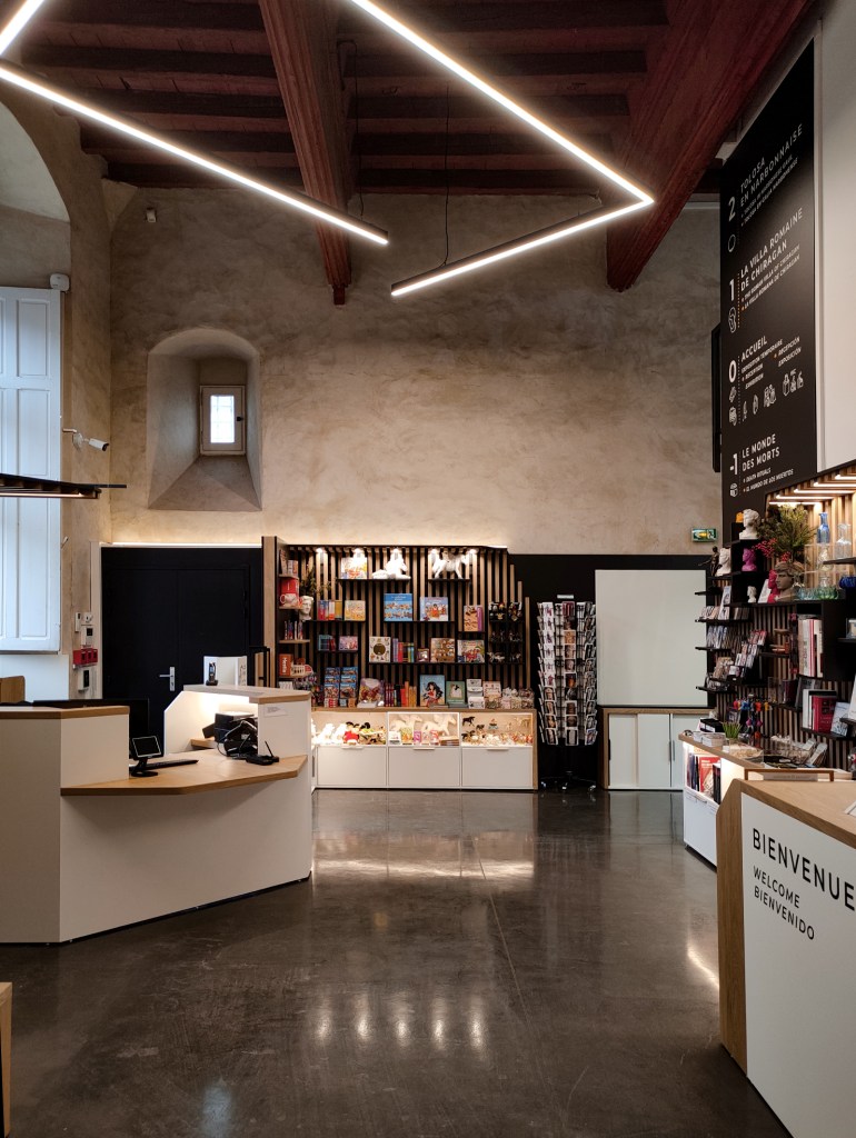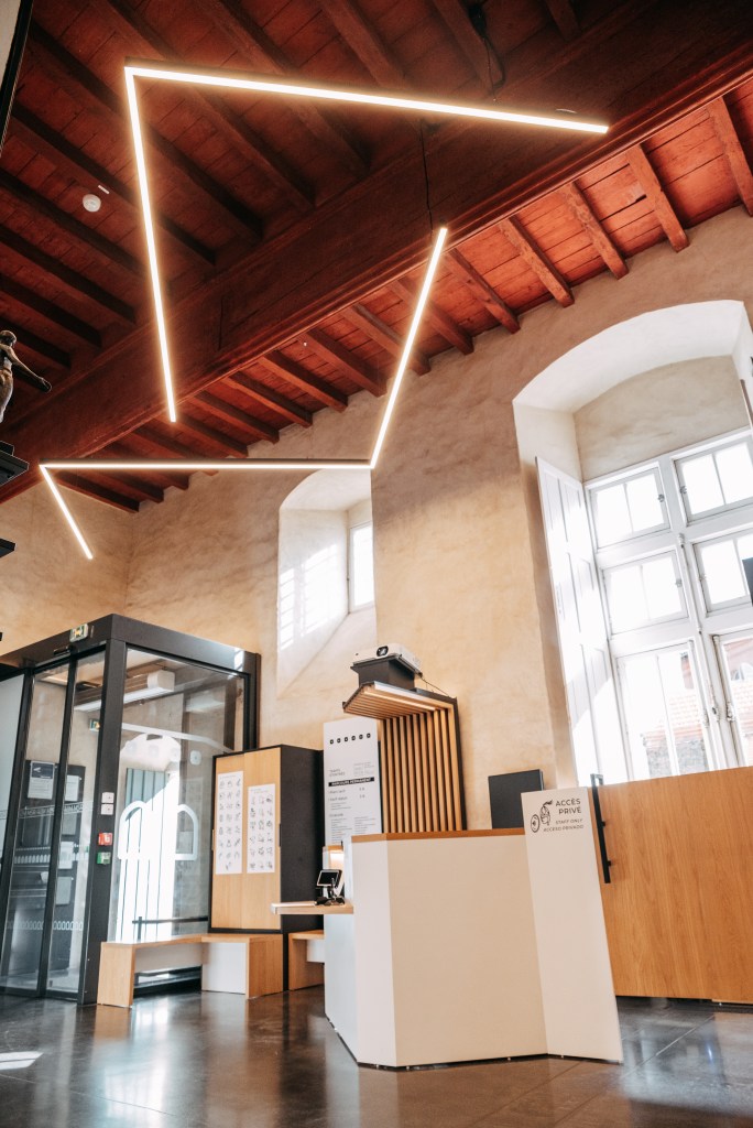 Afin de participer à la dynamique de l’animation du Musée Saint-Raymond, le Designer propose un éclairage indirect coloré et réglable. Il vient soutenir visuellement les volumes supérieurs des espaces pour renforcer l’aspect chaleureux, un nécessaire pour accueillir du public venant passer un agréable moment.
