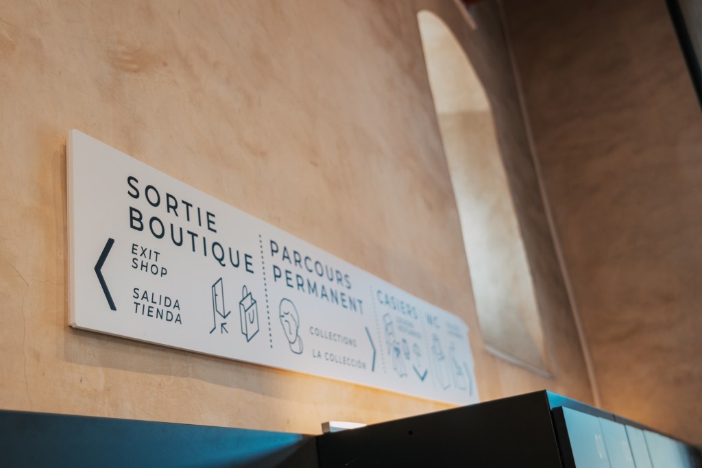 Au détour d’un mur, les directions sont indiquées dans un langage visuel permettant d’imager les services et les espaces s’offrant au visiteur.