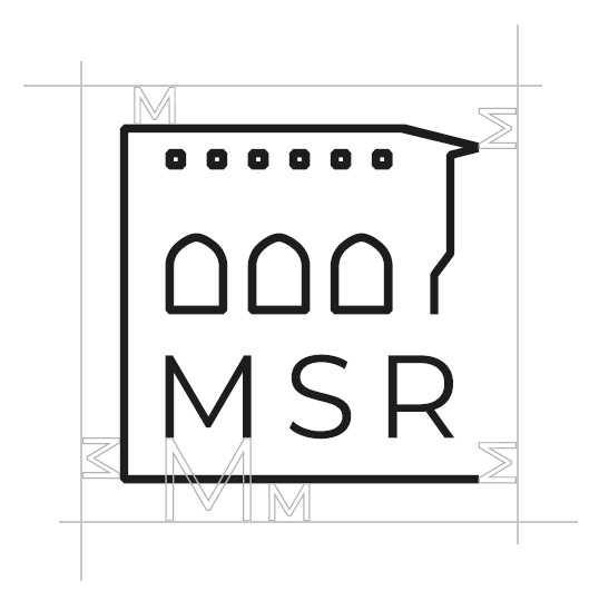 Ce qui sert à la communication, aux rapports de fouilles de comprendre un site, lorsqu’il est compliqué d’identifier les éléments. Le carroyage se met en place en installant des fils élastiques blancs, câbles, et autres cordes qui s’entrecroisent au dessus des parcelles fouillées ou contre des parois mis au jour. Cette trame découpe les zones, et les cases formées prennent un nom. Et elle peut être la base sur laquelle un visuel peut-être établit pour la recherche du logo. En faisant évoluer la trame, la grille normée devient une grille modulaire, pouvant faire écho à l’aspect dynamique et mouvant du MSR.